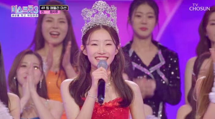 이날방송에서는 매 라운드 최상위권을 휩쓴 ‘첫눈 보이스’ 정서주가 4라운드 팀 메들리전에서 신기록을 썼습니다. 3라운드 진인 정서주는 팀원 우선 선택권을 사용해 드림팀을 완성했고 정서주를 필두로 ‘명품 끼 패키지’ 김소연, 1라운드 진이자 ‘꺾기 인간 문화재’ 배아현, ‘고막 여친’ 정슬이 ‘뽕커벨’로 뭉쳤습니다.